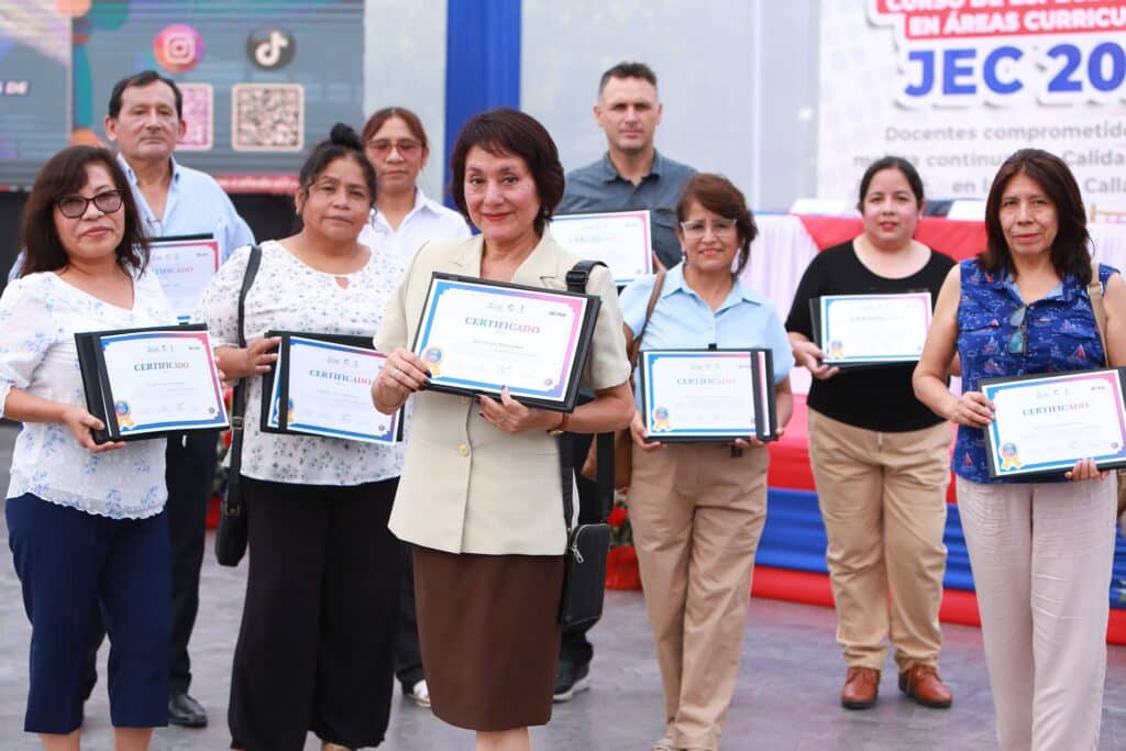 - A través del Comité de Administración del Fondo Educativo del Callao, se entregaron certificaciones en Áreas Curriculares – JEC tras 208 horas de capacitación.