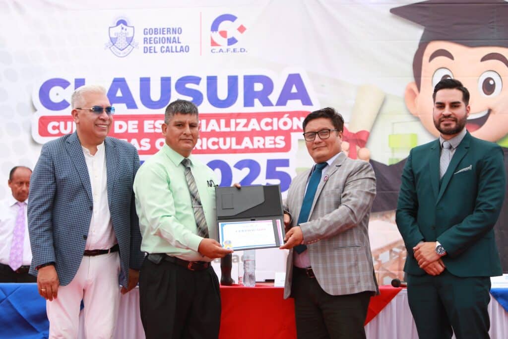 Durante la ceremonia, se destacó que la capacitación docente es una inversión estratégica que impacta directamente en el aprendizaje de miles de estudiantes. «Nuestros docentes no solo forman estudiantes, forman ciudadanos; son agentes de cambio, de paz y de esperanza. El Callao los necesita hoy más que nunca», enfatizó durante el acto protocolar el Lic. Luis Alberto Castillo Paz, gerente general del CAFED.